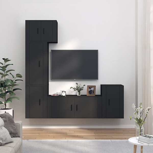 vidaXL TV-skåp 5 delar svart konstruerat trä 3188623