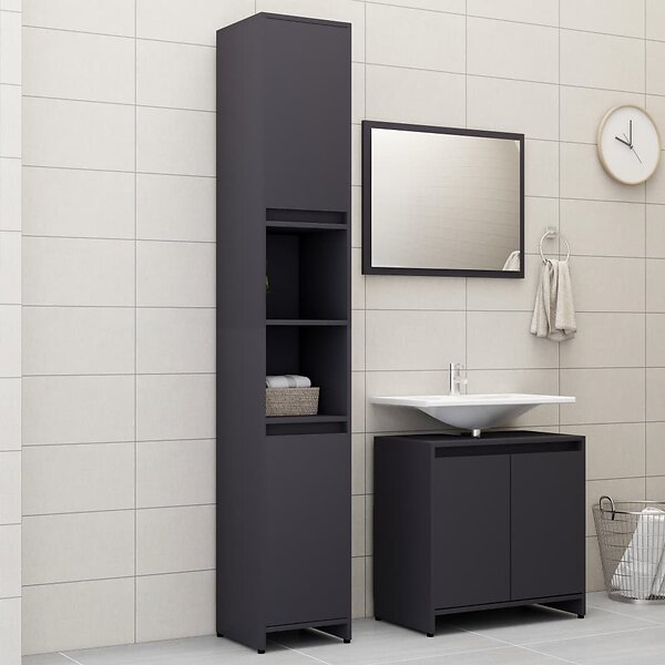 vidaXL Badrumsmöbler 3 delar grå konstruerat trä 3056936