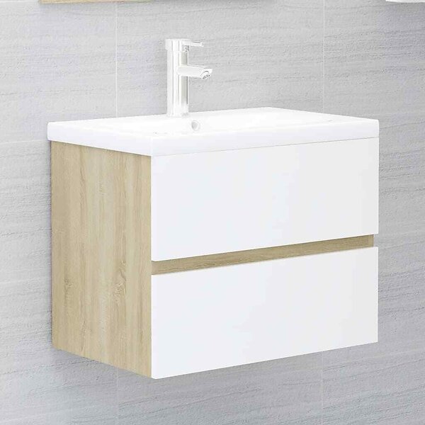vidaXL Tvättställsskåp vit och sonoma-ek 60x38.5x45 cm spånskiva 804742
