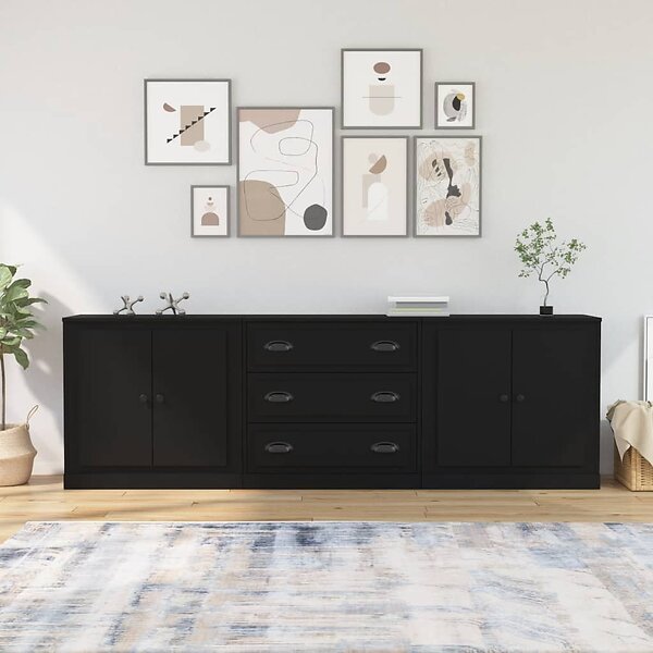 vidaXL Skänk 3 delar Svart konstruerat trä 3185216
