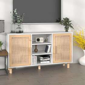 vidaXL Skänk vit 105x30x60 cm massiv furu och naturlig rotting 345639