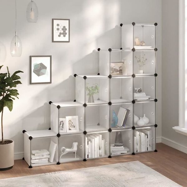 vidaXL Förvaringskuber stapelbara 15 kuber med dörrar genomskinlig PP 340553