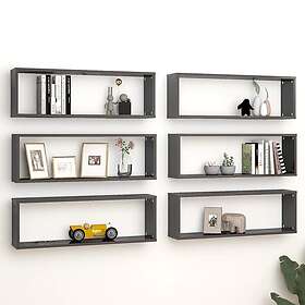 vidaXL Vägghylla kubformad 6 st grå högglans 80x15x26.5 cm spånskiva 807132