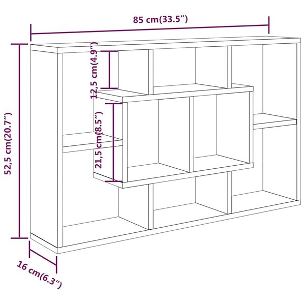 vidaXL Vägghylla rökfärgad ek 85x16x52,5 cm konstruerat trä 820460