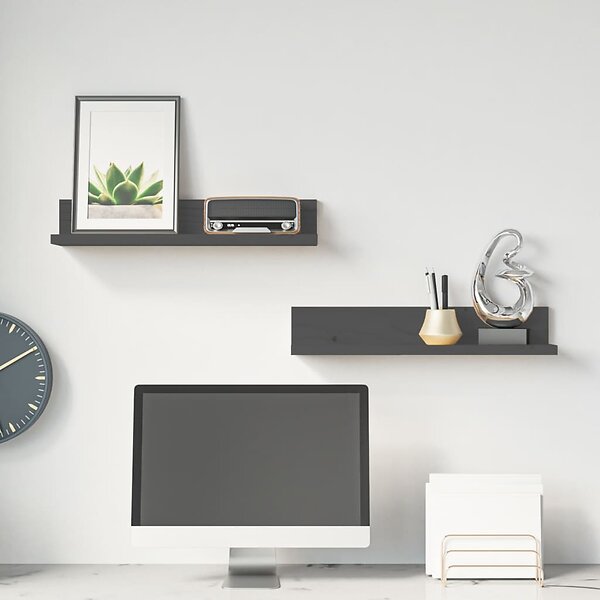 vidaXL Väggskåp 2 st grå 50x11x9 cm massiv furu 823601