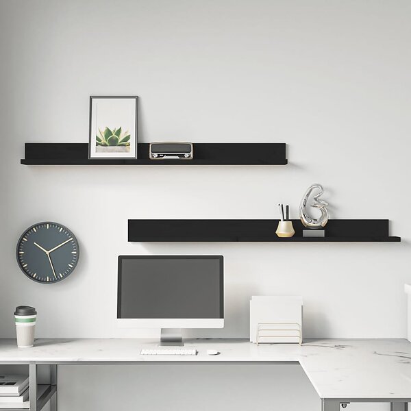 vidaXL Väggskåp 2 st Svart 110x11x9 cm massiv furu 823613
