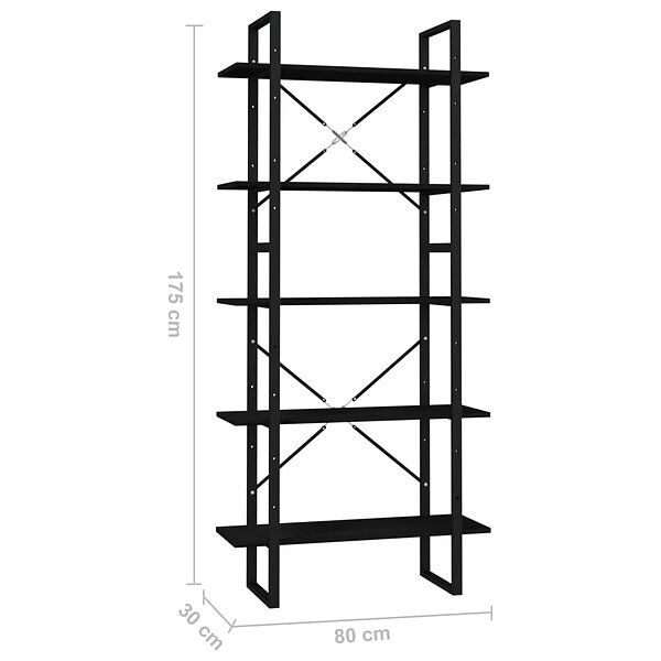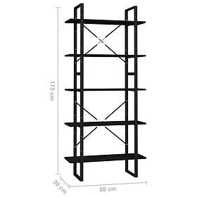 vidaXL Bokhylla 5 hyllor svart 80x30x175 cm furu 3081997