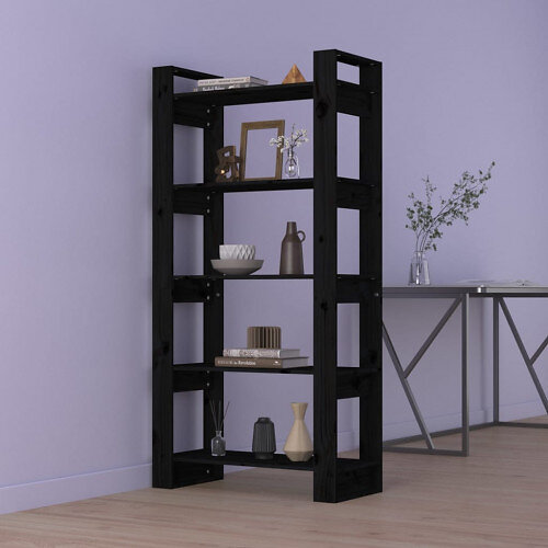 vidaXL Bokhylla/Rumsavdelare svart 80x35x160 cm massiv furu 813913