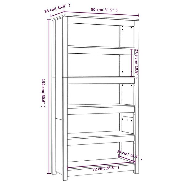 vidaXL Bokhylla honungsbrun 80x35x154 cm massiv furu 821692