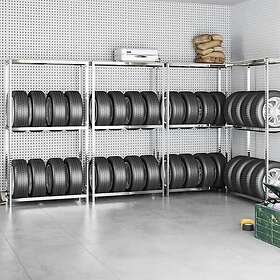 vidaXL Däckställ 2 hyllplan silver 4 st 110x40x180 cm stål 3154233