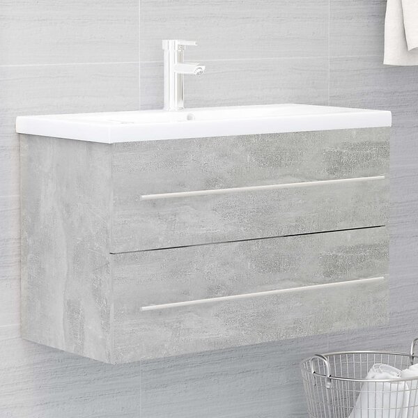 vidaXL Badrumsskåp med inbyggt handfat betonggrå konstruerat trä 3099054