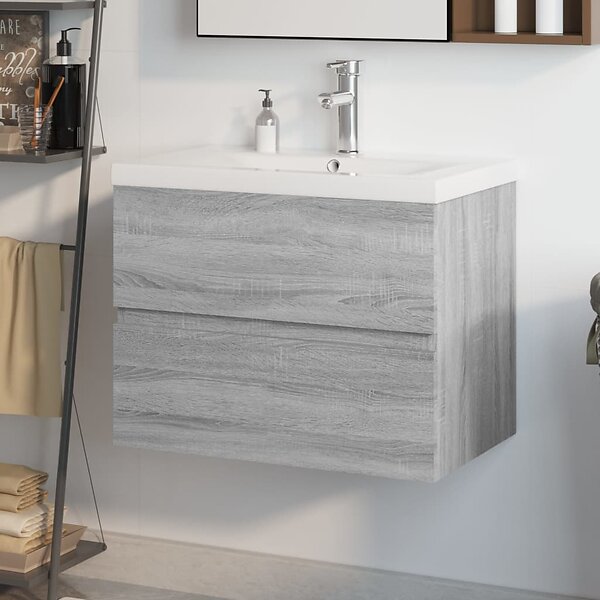 vidaXL Badrumsskåp med inbyggt handfat grå sonoma konstruerat trä 3152871