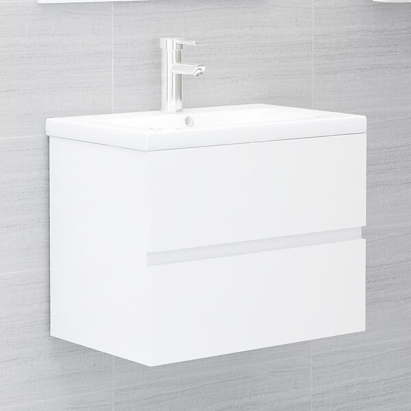 vidaXL Badrumsskåp med inbyggt handfat vit högglans spånskiva 3071636