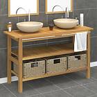 vidaXL Handfatsbänk med gräddvita handfat massiv teak 3096587