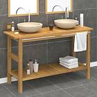 vidaXL Handfatsbänk med gräddvita handfat massiv teak 3096580
