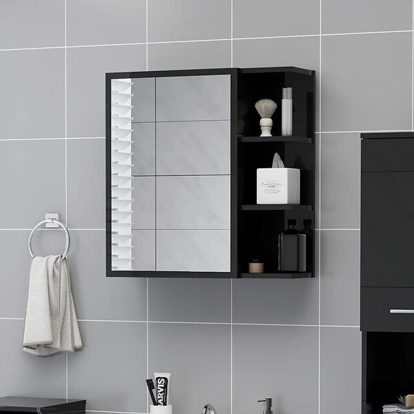 vidaXL Spegelskåp för badrum svart högglans 62.5x20.5x64 cm spånskiva 803315