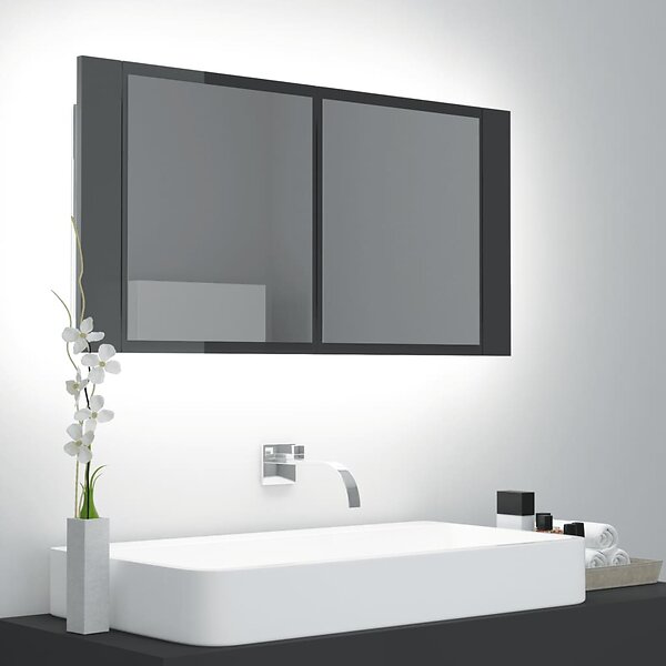 vidaXL Spegelskåp för badrum LED grå högglans 90x12x45 cm akryl 804979