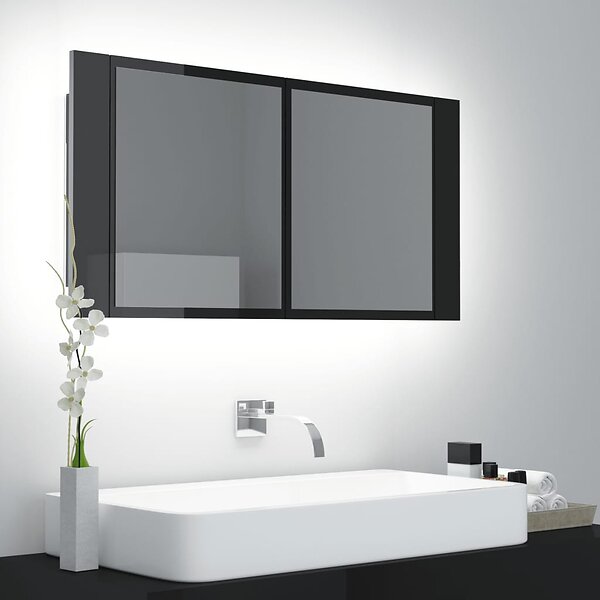 vidaXL Spegelskåp för badrum LED svart högglans 90x12x45 cm akryl 804978