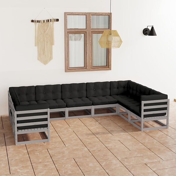 vidaXL Lounge-ryhmä med Dynor 9 delar grå massiv furu 3077316