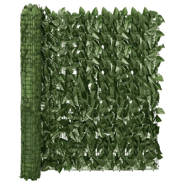 vidaXL Sivuaverkkosuoja Lehtipainatus 300x100cm Tummanvihreä 315487