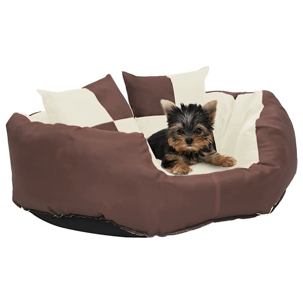 vidaXL Vändbar och tvättbar hundsäng brun gräddvit 65 x 50 20 cm 171211