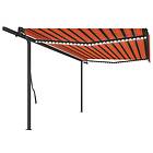 vidaXL Markis manuellt infällbar med LED 5x3.5 m orange/brun 3070265
