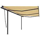 vidaXL Markis med stolpar automatisk 6x3.5 m gul och vit 3070288