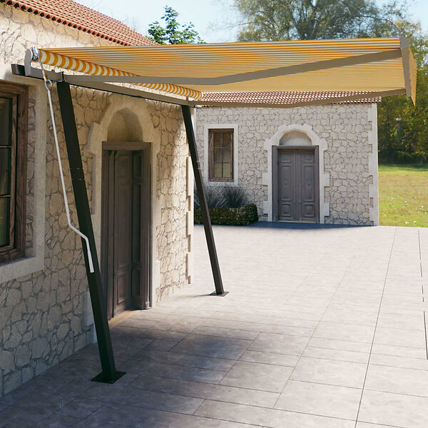 vidaXL Markis med stolpar manuellt infällbar 4x3 m gul och vit 3070138