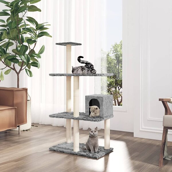 vidaXL Klösträd med klöspelare i sisal ljusgrå 119 cm 171519