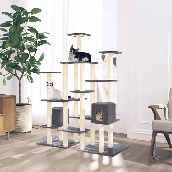 vidaXL Klösträd med klöspelare i sisal mörkgrå 145 cm 171532