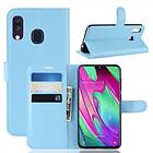 Samsung Galaxy A40 Plånboksfodral Litchi PU-läder Ljusblå