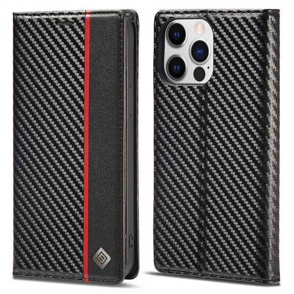 LC.IMEEKE iPhone 14 Pro Fodral Kolfibertextur Röd Stripe Vertical