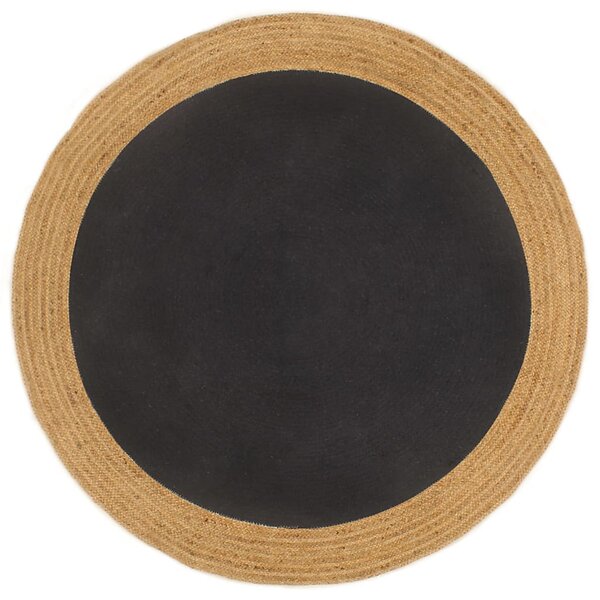 vidaXL Matta flätad svart och naturlig 120 cm jute och bomull rund