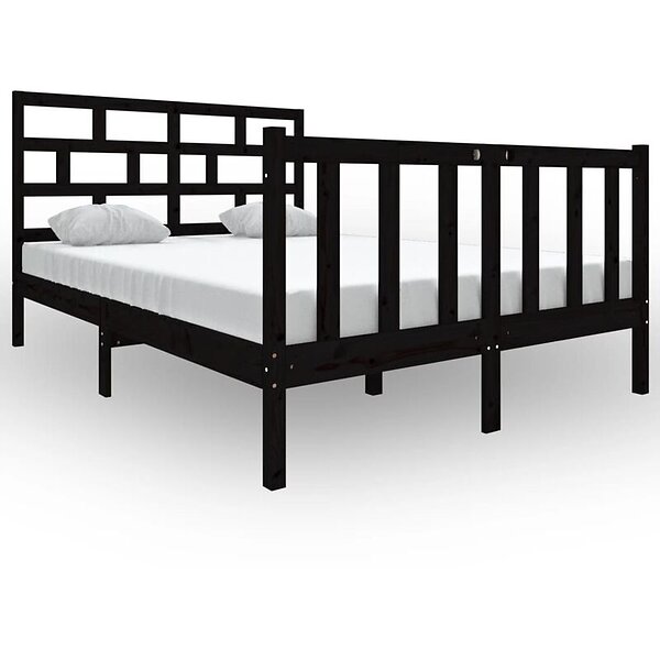 vidaXL Sängynrunko svart massiv furu 140x190 cm 3101332