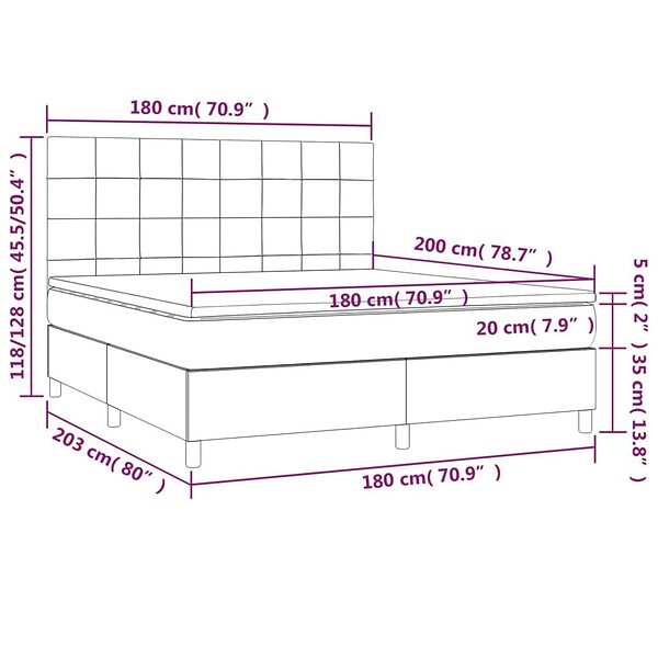 vidaXL Ramsäng med madrass & LED svart 180x200 cm sammet 3136139