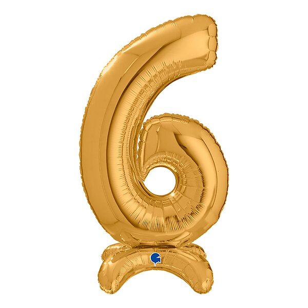 Sifferballong med Ställning Guld Siffra 6