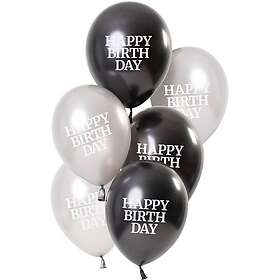 Ballonger Valkoinen/Svart Happy Birthday 6-pack