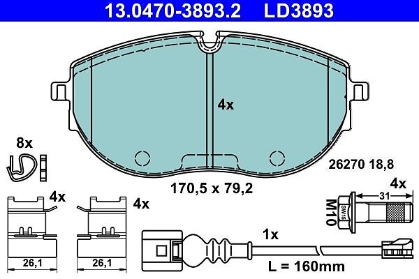 ATE Volkswagen Bromsbelaggssats skivbroms 13047038932
