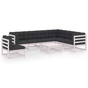 vidaXL Lounge-ryhmä med dynor 8 delar vit massiv furu 3076820