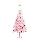vidaXL Muovikuusi LED-valoilla ja joulupalloilla Pinkki 120cm