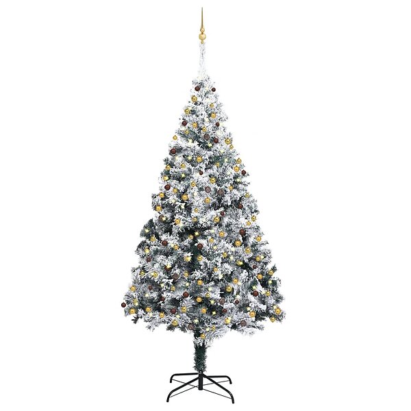 vidaXL Keinotekoinen puu Lumivalkoinen Vihreä 300cm LEDs