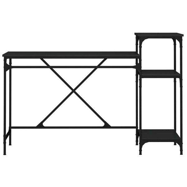 vidaXL Työpöytä med hyllor svart 135x50x90 cm konstruerat trä&järn 826709