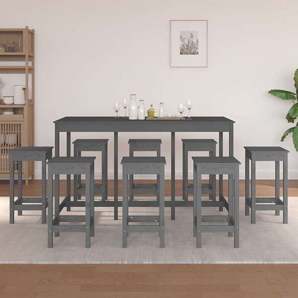 vidaXL Barmöbler 9 delar grå massiv furu 3124719