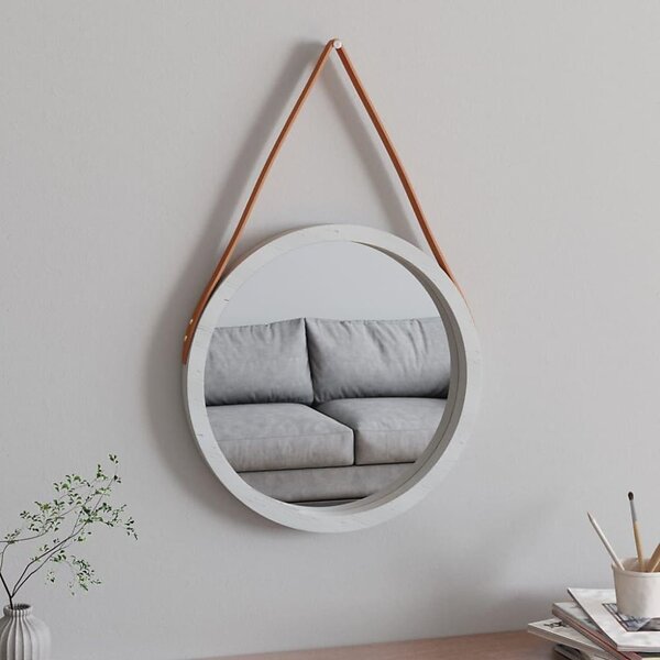 vidaXL Väggspegel med rem vit Ø 45 cm 351536