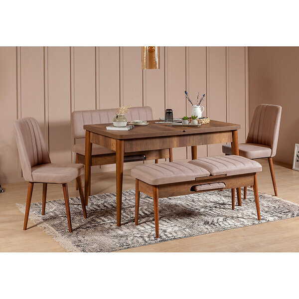 Hanah Home Set med bord och stolar (5 delar) Vina 0701 Valnöt/Stone Sammet 163 75