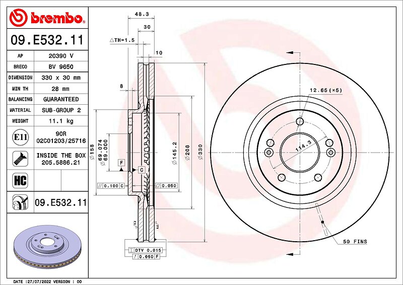 Brembo Bromsskiva 09.E532.11