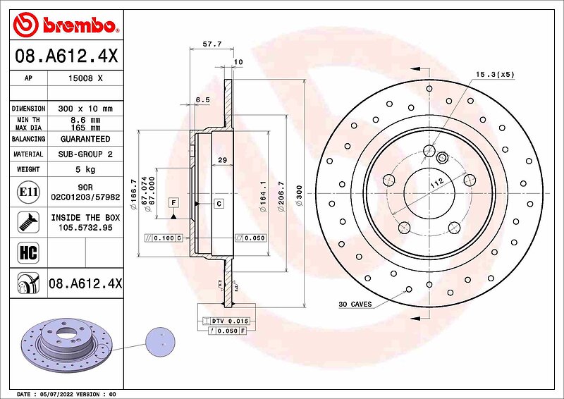 Brembo Bromsskiva 08.A612.4X
