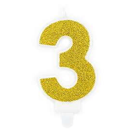 PartyDeco Tårtljus Nummer 3 Guld