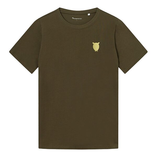 Knowledge Cotton Regular Fit Owl Chest Embroidery T-shirt Herr