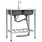 vidaXL Campingdiskbänk med dubbla handfat och kran rostfritt stål 151212